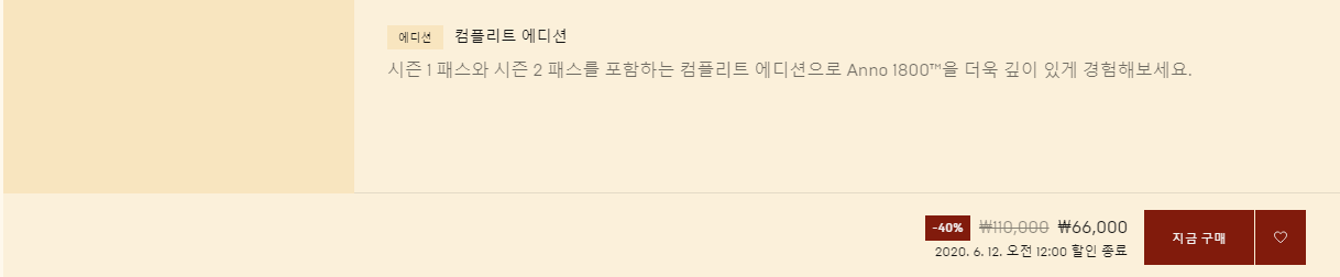 에픽스토어에서 지금까지 발매된 모든 DLC를 포함하는 아노 1800 컴플리트 에디션을 무려 "6만 6000원"에 판매중이거든요.