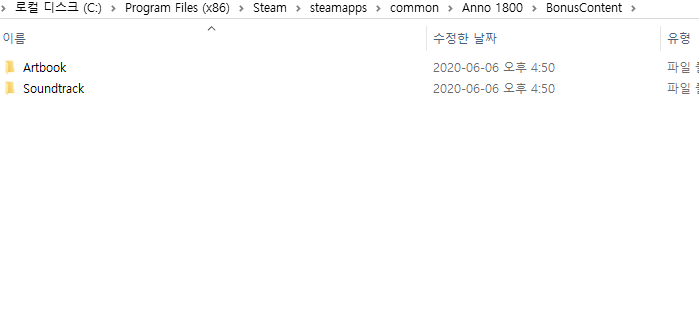 로컬 디스크(C:) ▶ Program Files (x86) ▶ Steam ▶steamapps ▶common ▶Anno1800 ▶BonusConten 에요.
