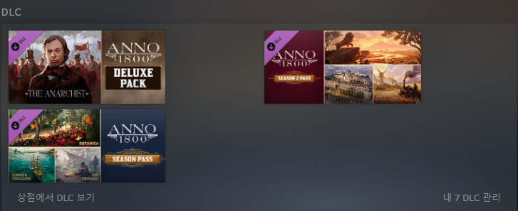 무정부주의자 DLC (정확히는 디럭스팩) 구입을 끝으로 지금까지 발매된 아노 1800 모든 DLC를 구할 수 있었어요.