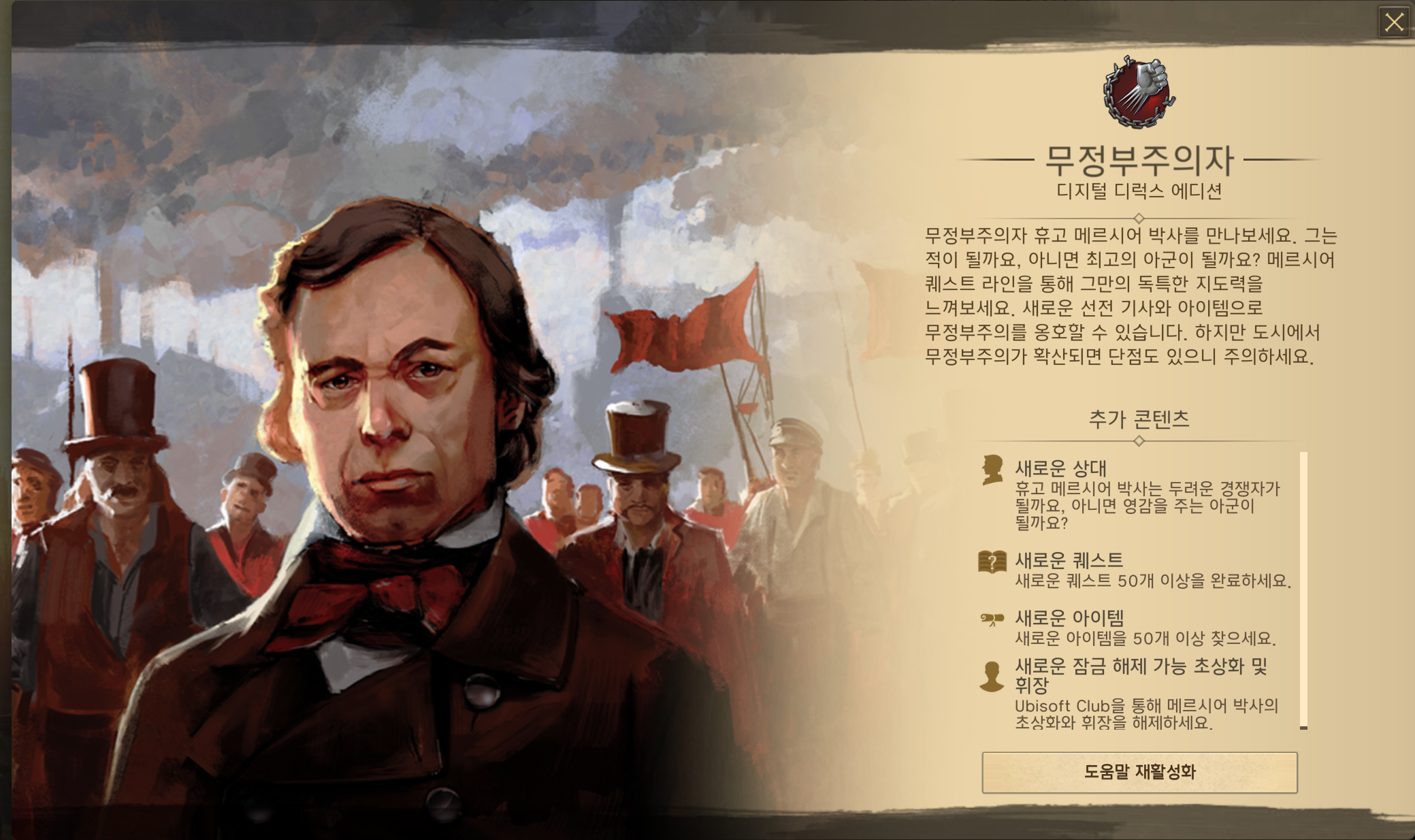 이번 글에서는 무정부주의자 DLC를 구입한 이야기를 하고