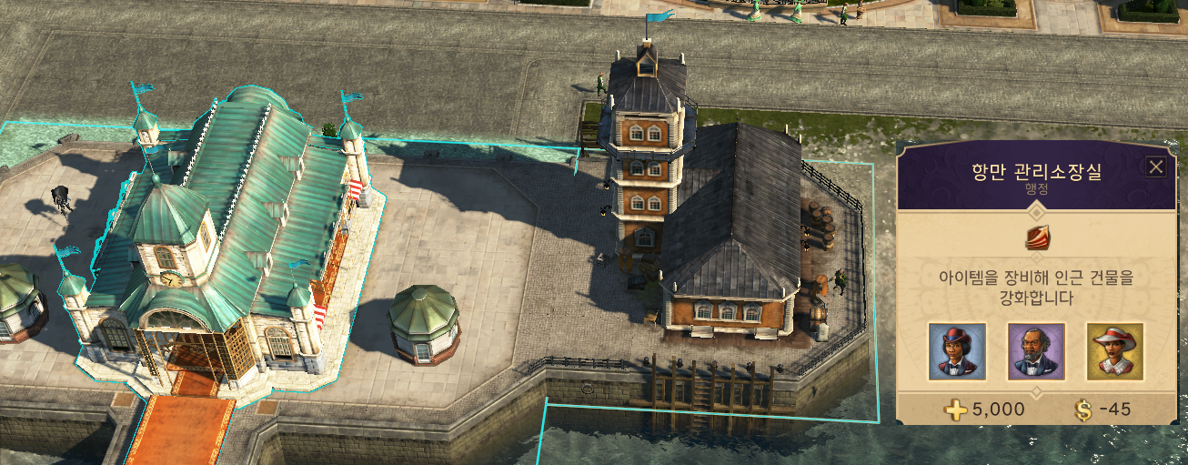 항만 관리소장실은 지배중인 섬 해안가에 건설할 수 있으며 해안은 물론이고 근처 바다에도 건설할 수 있어요.
