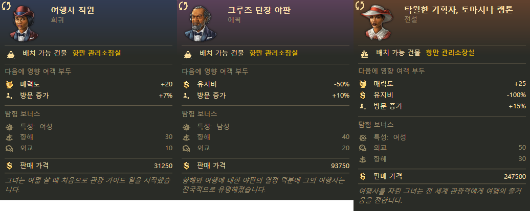 둘다 상당한 매력도가 붙어 있는데다 방문 증가는 전설 전문가랑 동급이상이라 애매한 성능의 "여행사 직원" "크루즈 단장 야판"을 빼고 넣기에 좋아요.