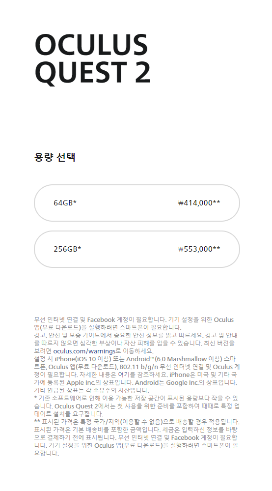 공식 홈페이지 주소 : www.oculus.com/quest-2/